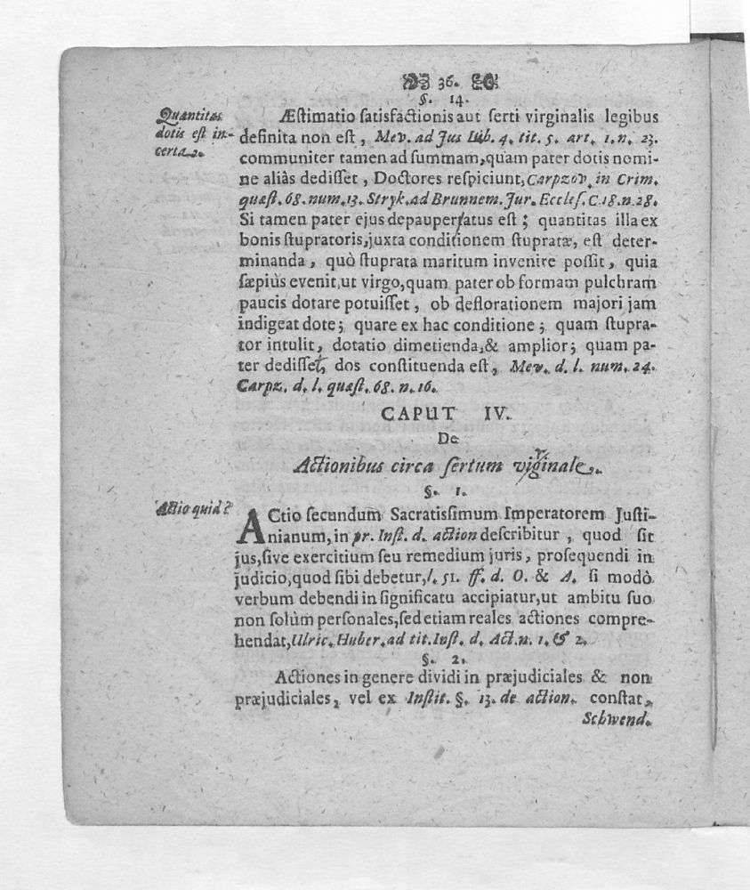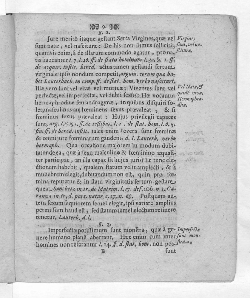 Disputatio inauguralis juridica, De Serto virginum, von Jungfer Frantz / quam ... sub praesidio viri magnifici Dn. Joh. Henr. Meieri,... pro obtinendi summos in utroque jure honores & immunitates licentia ... horis consuetis publicae disquisitioni submitti